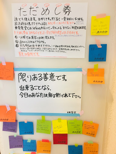 Read moreこのお店は人を選ぶでしょうね 入り口扉に貼ってある「ただめし券」持参して更に50分お店手伝いで、まかないを一食無料 店内への飲み物の持ち込み自由。そのかわり半分をお店に献上。カウンターの上の飲み物は自由に飲んでOK メニューは日替わり定食一種類のみ 次回来店時に100円引きの割引チップを貰える 効率最優先の為、細かいルールがある などなど 普通の飲食店のような当たり前のサービスを受けないと駄目って人には徹底的に合わない可能性があります ですが、そういうことを一切気にしない方、柔軟に対応できる方なら、このお店は本領を発揮するんじゃないでしょうか 小鉢3品、椀、お櫃でおかわりし放題のご飯、お客さんの差し入れ等のおまけがつくかつかないか これらすべてでディナーで900円はぶっ飛んでます 味もまったく文句ないし、足りなければサイドメニューを追加すればいい なにせご飯はおかわりし放題なんですから ただ、初見はその独特の空気がわからずとまどいました ですが、次からは落ち着いて食事ができそうですね 興味のある方は一度体験してみてください 徹底したコスト管理、時間管理、と効率最優先で営まれてるまさに「未来」を予感させるすごいお店です