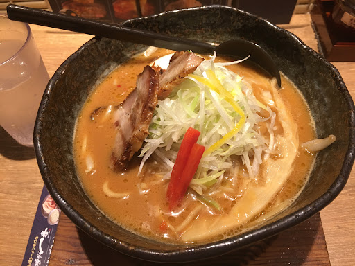 We had lunch here on 3/24 (Monday) around 1pm. While it was busy, it wasn't loud or super crowded like the other restaurants we had passed. (We both got seated immediately and there was at least one table open throughout our visit.) We both had Miso Ramen with everything and no additional add-ons. It was piping hot, lots of food (not just the noodles), and very delicious!!