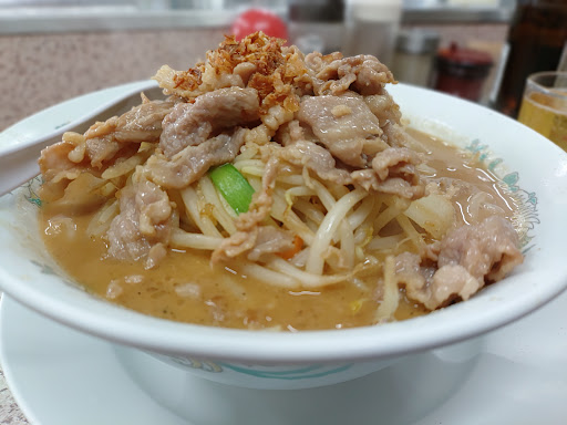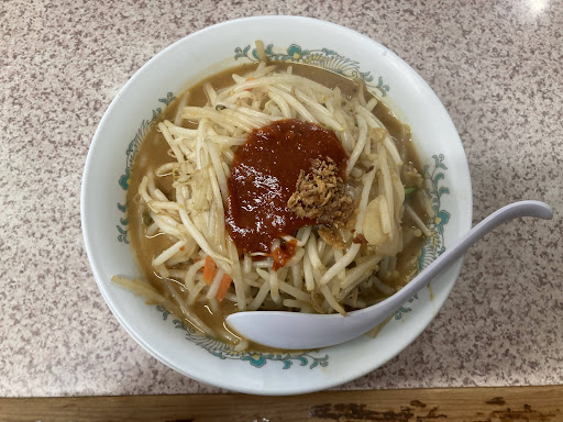 Read more土曜日の14時半頃に伺いました L字状のカウンター席のみ〜ロードサイドのラーメン屋的な店内に先客は2名と空いてました その後、食べてる時に家族連れとか何名も来られ、満席にならずとも客の出入りがといった感じ 肉タンメンに3個餃子、ビールを注文 ラーメンの好みのは濃い目、硬めで 野菜〜モヤシを炒めてからスープで煮て味噌を加える感じでしょうか 茹でモヤシでは無いので、野菜増ししなければ味濃い目にしなくても大丈夫かなと ノーマルでもなかなかの盛りの1杯です 野菜増しすると、大きなおっちゃんの手でひとつかみ分モヤシが増す感じかな? 野菜を炒める時に、ひき肉らしき物を加えてますが、あまり肉感は無いので、トッピングに肉追加は有ったほうが良いかと しっかり熱の通った野菜と、濃い目のスープと肉が混在となって美味しい 中太の縮れ麺はさぼど量は無いので、野菜をメインに食べ進める テーブル調味料は醤油、酢、ラー油、胡椒、一味でニンニクが無いのが以外でした 餃子はニンニク風味のしっかり味の餡で美味しかった ビールとラーメンの合間に丁度よい ラーメンがかなりボリュームあったので、3個にしておいて良かった チャーハンがあっ...