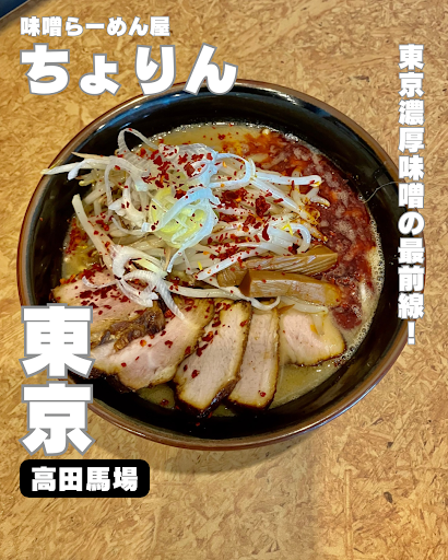 Read more味噌らーめん屋 ちょりん@東京都豊島区高田3-21-11 どうも、さぴおです ✍️ちゃーしゅー辛味噌らーめん 1320円 ______________ 🍥ポイント ✅濃厚な円やか白湯なれど味噌主体のソリッドな味わい!東京濃厚味噌の最前線!! ✅荻窪の超人気濃厚味噌「味噌っ子 ふっく」出身 ✅フチが焼かれたチャーシューが美味すぎる!チャーシュー増しがおすすめ!!  ̄ ̄ ̄ ̄ ̄ ̄ ̄ ̄ ̄ ̄ ̄ ̄ ̄ ̄ [点数] 86点...
