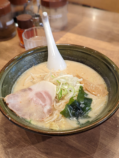 Quick stop for generous portions of miso ramen, offering a wide range of self-serve condiments.