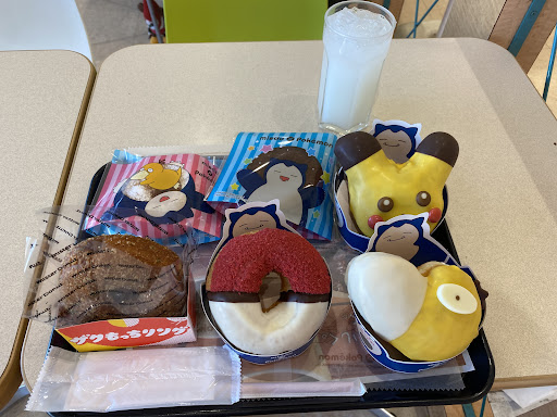 こっちのコメントは、以前のものです。 いつかはチャレンジと思っていたドーナツ食べ放題(60分で1800円、ドリンクももお代わりok)に挑戦しました。 もっと食べられるかと思ってましたが、16個+カルピス1杯、アイスジャスミンティー2杯が限界でした😅 ①ピカチュウドーナツ ②コダックドーナツ ③モンスターボールリング ④カビゴンの満足カスタード&ホイップ ⑤カビゴンの満足チョコ&ホイップ ザクもっちりリング カレー&タマゴ ⑥ザクもっちりリング 明太ポテト&タマゴ(2個) ⑦とろ〜り4種のチーズ&ミートパイ(2個) ⑧海老香るクリーミービスクパイ(2個) ⑨ホット・セイボリーパイBBQフランクフルト(2個) ⑩大人のポンデショコラ芳醇カカオ ⑪エビグラタンパイ ⑫しっとりマフィン アップル・アールグレイ でした。