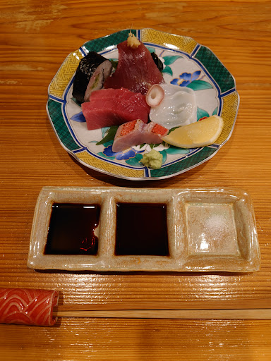 ◎良いポイント ●鮮度が際立つお刺身のクオリティ コース料理の中で最も印象的だったのは、お刺身のクオリティです。 特に金目鯛の炙りが絶品でした。炙られた皮目の香ばしさと、身の甘さが絶妙に調和し、食感が楽しめました。 また、本マグロやカツオも新鮮で、脂が程よくのっており、それぞれが違った味わいを提供してくれました。添えられた塩や醤油の選択も的確で、素材の良さを引き立てていました。刺身一つ一つに手間をかけており、シンプルながらも奥深い味わいが堪能できる逸品でした。