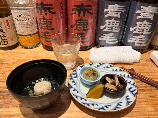 The server ruined our dinner experience. We arrived at 9 and were half way up the stairs when the server at the top was telling us, in Japanese, not to go up and that there was a 30 minute (my friend heard but I was focusing on going up the stairs and didn’t hear) so he kept repeating it and probably deemed us stupid by then because his attitude was terrible the rest of the night. I wasn’t understanding so I made an X sign with my arms since some restaurants stop taking guests if sold out, but he didn’t say yes or no. He repeated it in Japanese again then finally said wait and 30 minutes in English. We said it was fine in Japanese. We’re both foreigners but semi fluent in Japanese. He pointed to the two chairs so we could wait. (Didn’t see any signs about waiting in the stairway.)