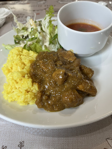 カレーは見ての通りサラダとミネストローネまで付いています。しかもこの鶏肉ゴロゴロのカレーが美味い!……いやほんとに美味いなコレ。味のバランスがとてもいい。サフランライスっぽいターメリックライスともよく合うし。まあでもこちらのお店はイタリアンだからさすがに普段はやってないのかな……久しぶりすぎてわからず……。