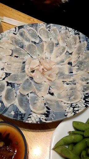 席には最初から枝豆がセットされており、すっぽんの血日本酒割り(全然臭くないですし、飲みやすくマイルドでした!)→てっさ→すっぽんの刺身、卵?、レバー→鮭→鯨ベーコン→鴨のパストラミ→ふぐの唐揚げ→すっぽん鍋→野菜かき揚げ?雑炊→デザート(苺)とパンパンになるまで出てきます。 どれもこれも美味しく、でも余りにも量があって残念ながら食べきれませんでした。