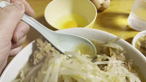 お店のルールとしては… ・カウンターに座る人は提供の直前、 テーブル席の人は券を渡す時、に トッピングを聞かれるようです 「おいおい俺の方が早く来たよ?」 と勘違いしちゃダメですね ・卵は殻付きで提供されます テーブルに殻を置くのに抵抗ある人は ラーメンの中にドボンしかなさそう ・汁なしは頼めるようです ・食べ終わったらどんぶりは 上げなくて良さそうです どうすればいいか躊躇していたら 常連らしき人がそのまま席を立ちました ・卓上に「かえし」がありましたので おそらくカラメはセルフです