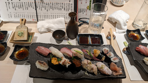 The food is good but not good enough to offset the service here. The food service is very slow and they don’t have enough staff in front of the restaurant to be attentive to the customers. We constantly had to ask the staff to clear the dirty plates at our table for the lack of space to eat. Both my husband and I got the sushi course meal to test this place out. This costs ¥8500 per person. The course meal started with us getting a mozuku somen as an appetizer but we couldn’t have it without the dipping sauce which we waited a good 10 minutes for it. So we just had this appetizer sitting in front of us but we couldn’t eat it. Turns out the kitchen staff didn’t even remember to bring it out. Then we ordered some sake to go with our meal and the waitress accidentally spilled sake onto my skirt. This definitely didn’t make the experience any better. Part of the sushi course was to have 8 maki rolls but the chef forgot about it!! We were waiting so long for it until we couldn’t wait any longer. The service was so slow we were approaching a 3 hour meal and we had to leave because we had to let our babysitter go. We are never coming back here. There are much better places than this. It is not worth...