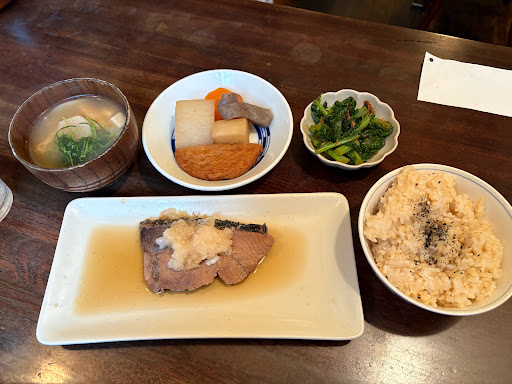 Read moreWe entered for an early dinner on a Saturday afternoon, and were the only customers. The space is very cozy and atmospheric. The food was very reasonably priced (how many places in Tokyo can you get a teishoku meal for 1000 yen these days anyway?) and very filling. The ingredients where nutritious whole foods. I had the fish meal, and my friend had the vegetable meal, with brown rice. There is an English language menu. The toilet upstairs is traditional which was a fun touch, haven't seen one of those in...