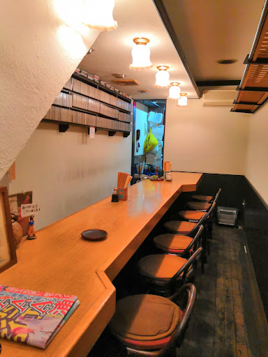 The first floor is occupied by a bar, where grandpa chills, and he'll gesture you towards the second floor where there's several small tables arranged to fit in the cozy space. Grandma offered us the menus and some barley tea as soon as we ordered. Decor is homey, time-worn, with some surprising pops of character such as the Dragon Ball Z figurines in the eaves. Never say they don't have a sense of humor.
