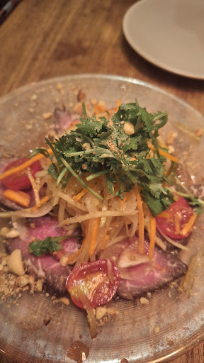 First off, the interior looks great with spacious seating and high ceiling which you rarely find in most restaurants in Tokyo. This place serve multiple cuisines, but mostly south east asian base. I ordered the Thai green curry dish and it turned out to be a disaster! While the taste was ok, I was surprised that it did not have any chicken at all (maybe 2-3 small pieces and that's it?!) The dish was crazy small and I was wondering to myself if this can be considered as a main dish. I also ordered a glass of Kirin which was ok, but it didn't taste as fresh and cold as I would have in other places. My throat felt funny afterwards. An extremely unforgettable experience which I will never...