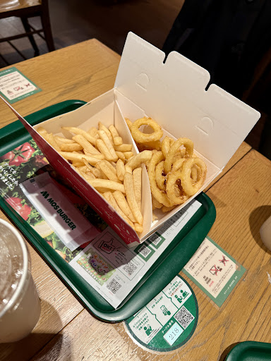 First time to MOS Burger and I loved it! I finally tried the yakiniku rice burger which I have been hearing about for so many years. I also really enjoyed the onion rings and fries (a very light, nice spice on them and the ketchup was nice too), and also had the matcha milkshake for dessert which is made with matcha from Izumo! The Ebisu location is in a cute building with nice seating upstairs and both upstairs and downstairs patio seating which is a bit rare. Bathrooms were nice, and the staff was super friendly. They are happy to offer English menus, and they even helped us carry the food upstairs since we...