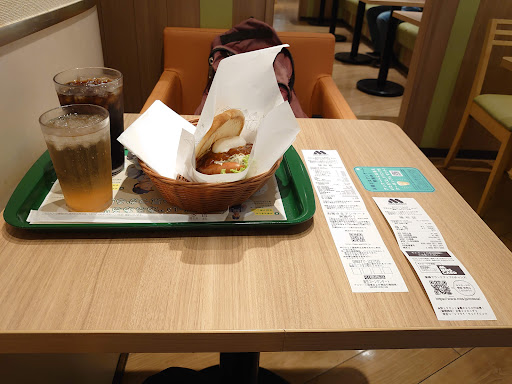 ↓前回のコメント 初訪問。水曜日の13:30頃伺い、1人待ちで注文できました。店内は6割ほど埋まってました 頼んだのはモスライスバーガー焼肉・Mサイズポテト・オレンジジュースのセット。普通に美味しかったです。味はマックより良い気がしますが、多分そんなに変わらないんでしょう...そうなると少し割高です。しかし個人的にはもう少し高くなっても良いからライスバーガーにもっと力を入れてほしい。私が好きなのもありますが、他店との大きな違いなので2、3種類しかないのはもったいないと思ってます。包み紙が分厚いのは助かりました。 店は狭く、席が20弱あります。入口近くに5個くらいコンセント付きの席がありますが、テーブルがとても小さいのであまり長居できそうではないです。店自体は騒がしくないですが、目の前が駅なので電車の音は結構します。店員は年配の女性数名で、接客にムラありですが問題ないです。店内の清潔感はそこそこ。 ライスバーガ...