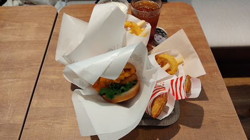 ※21/3/21追記 用事で駅前に来たのでまた来てみたところ ただのモスバーガーではなく モスカフェというお店に変わっていました 店内飲食してみた所店内も改装されたようで1階のカウンター席が無くなって普通の席になっていたりトイレも少し拡張されたようでした この日の注文したのは期間限定のマッケンチーズ&コロッケと紀州南高梅のまぜるシェイクにオニポテセットと国産りんごのスマートパイ マッケンチーズ&コロッケはサクサクのコロッケにミートソースとチーズソースのかかったマカロニが挟んであって味は濃厚で食べ応え抜群の美味しさ 紀州南高梅のまぜるシェイクは梅のすっぱさにシェイクの甘さがマッチして爽やかな風味で美味しかったです ただ1つ難点があって梅のソースが底に溜まっていてシェイクと混ぜようとしてもシェイクが少し柔らかくなるまではストローが負けちゃって全然混ざらなかったのでできればプラスチック製スプーンもつけて混ぜやすくするかもしくはソースを上にかけて欲しかったところ 国産りんごのスマートパイはパリッと揚げられたりんごのパイでりんごのフィリングがシナモンが効いた刻みりんごでこちらもとても美味しかったです ※後で知ったのですが混ぜるシェイクは本来ロングスプーンが付くとのこと 今回なぜ貰え...