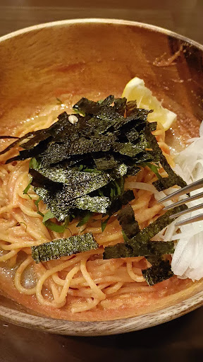Compact mainstay with a down-home ambiance serving spaghetti dishes with a Japanese twist.