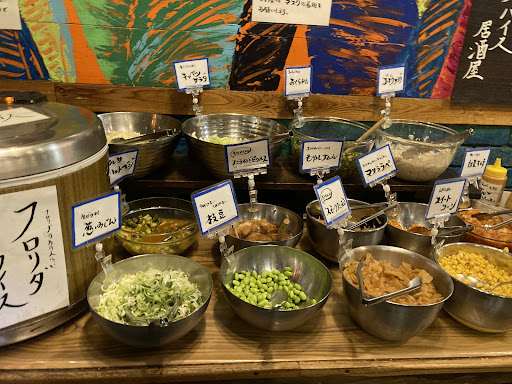 This is the best value for your money. 1320 yens for all you can eat buffet. You have a very tasty salad bar and lot of chickens option. Curry has a lot of spice and theres also veggie curry options. I also love the free tea. Avoid the busy hours since food may become scarce. The atmosphere is very reggie and Hawaiian. If you are a big eater and curry lover you will love this place. Don’t confuse the buffet restaurant with the another a la carte...