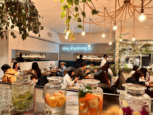 Read moreMr. Farmer is a franchise focused on healthy vegetables & meat dishes with lots of vegan options and salads. It’s super affordable and the settings remind you of being at a chic farm table. This location is in the Hibiya Food Hall in the Hibiya Mall (next to Toni cinemas). The dishes are fresh and super nutritious, portions are generous and 4 seasonally adjusted naturally flavored waters are free. My go to is the super green salad with a side of French fries which are rosted and flash fried potatoes. Delish all around! Smoothie are also a good Togo if you need a quick healthy pick me up! I had a salad, side and a dessert (vegan carrot cake) for 3100 Yens. Once you get a table, you will need to order via QR code and the meal will be delivered at your table! Beware that while their closing time says 10, last call is 9 pm which is why I took one star away from...