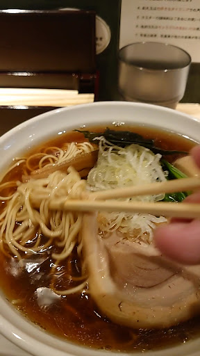 Read moreよく行列が出来ていたため 昼食目的で立ち寄ることにしました。 総評 高単価の価格設定にすることで ターゲットを絞り込み 少ない客数でも収益があげられる ことを狙っている印象で 私にはそれに見合った付加価値が 感じられなかったため低評価です。 食事 ※味覚については好みがあるため 価格設定に対してその他の基準と 照らし合わせての味の評価とします。 曜日によって食べられるメニューは かなり限定的であり、口コミなどで 誤認をしてしまうと 食べたいものが注文出来ないことが ありうるためよく事前確認が必要です。 私は醤油ラーメンを消去法でやむなく 注文しましたが、価格の設定から 期待を超えて来る味でありませんでした。 つまり、同じ金額を出した際に ここのクオリティを上まわる食事か もしくは他の評価軸のサービス、雰囲気 において大きく上まわってくる 店舗がより立地利便性の高いところで 食べることが可能です。 わざわざ足を運んで並んでまで行って 食べるレベルものではありません ご近所で昼食に1500円くらいを 予算に食事をされている方に適していると思われます。 サービス 客側に異常に制約を強いているため 店頭から店内に至るまで 注意書きの貼り紙が異常に多いです。 ○店頭に並んで待つ時のルール ○支払いは現金は不可のため 支払方法のルール (とはいえ現金しか持ち合わせがなければ 対応してもらえるためまた説明が増えます。) ○提供メニューは曜日ごとに制約があるため細かく説明 以上を入店までに熟読し理解した上で 利用する必要があります。 数名程度の待機でしたが通常のラーメン店の倍以上の待ち時間を想定する必要があります。 あらゆる制約を設けてくる理由は 丁寧な仕事をするためと一言で 片づけられております。 店内に入ると驚きます。 カウンターに7席のみ 外に列が出きる理由はこれです。 若いご夫婦?二人で切盛りしておりました。 熟練した職人のような所作は感じられず 丁寧というよりはのんびりという 印象を受けました。 回転が悪く待ち時間が延びるのは このためです。 一方でサービスは ○キャッシュレスの事前決済が原則 ○水はセルフ、ラーメン店としては普通ですが購入から着座の動きの導線から 外れているため二度手間を強いられる感覚になります。 ○店員と客のコミュニケーションも最低限度に絞り込まれるようになっているため店員が接客に時間を割かないようにする努力が最大限なされています。 雰囲気 ここまでの説明で察することが出来ると 思います。 店内はシンとしてピリピリした空気感が漂っています。 間接照明の照度の低さは高級感には 一切つながらず陰湿な暗さをより演出するかたちになっていました。
