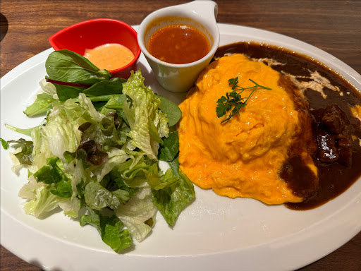 【ビーフシチュー】 正式には 「グリル野菜ととろけるビールシチューのご馳走プレート(スープ付)」 ビーフシチュー グリル野菜 ライス サラダ ミネストローネスープ