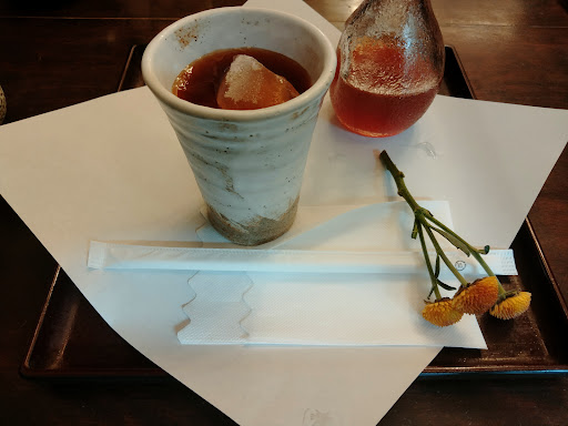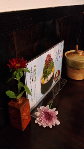 頼んだもの いちごかき氷・特製アイスティ かき氷はとってもふわふわで美味しかったです! 甘さも比較的控えめで、どんな人も楽しめる甘さだと思います。アイスティも茶葉の香りが芳醇で、個人的に苦みが強いかな? と思いましたが、こちらもやはり好きな方は好きだと思います✨️ 提供はとっても早かったです。大体アイスティーは一分くらい。かき氷は三分くらいでした。個人的に(ファミレスしか利用したことがなかった身としては)お皿に花が付いてくるのが初めて触れる文化すぎて内心椅子からひっくり返りました。本当におしゃれですよ……。 お値段は両方合わせて千六百円ほどです。だが、他の商品はこれより百円ほど安かったり、安いものであれば甘味と飲み物合わせても千円届かないものもあるので、自分にあった値段帯を選べるのも強みですね。