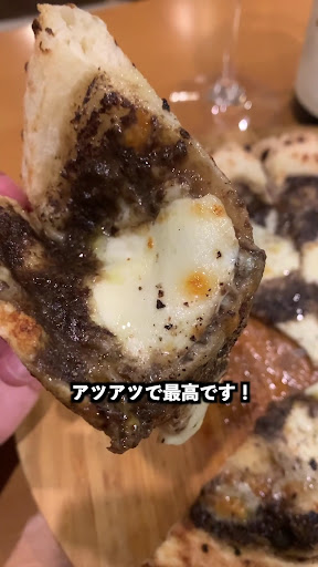 トリュフピッツァはミミがモッチモチ、そして今まで経験したことないくらいに熱々。 厳選牛ハラミの薪火焼きが特におすすめ!香ばしくって絶品です。
