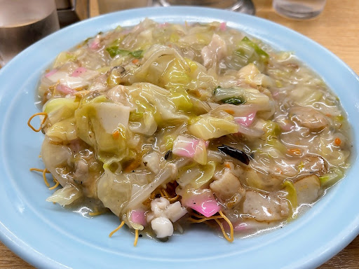 Read more☀️虎ノ門・西新橋ランチ150@皿うどん大盛¥1100- 客は、皆、正直だ。。1年半振りにお邪魔ささたが、コロナが明けても相変わらずの閑古鳥。 そーなんだよ、、店が空いているのは、コロナのせいではないのだと、、 ちゃんぽん、皿うどん、全て作り置きで、大きなボールから、フライパンに移して温めて出しているのだ😱😱😱😱 かつては、大フライパンに山盛りの野菜をぐつぐつ煮て、新旧野菜が混じり、野菜の食感を楽しめ、大量の野菜から出たスープが堪らない出汁だった。かまぼこも見かけないくらいだが、、魚介も今やアサリが2個😱😱 よくよく見れば、お父さんもお母さんもおらず、代替り?オーナーチェンジ?? そりゃ〜こーーーうなる訳だ。。 永遠の別れを誓い、店を後にした。 202204