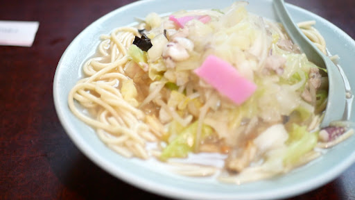 ここで注意(※)。 今回は同席者が1名いたが、二人そろっていないと入店できない。 先に並んで待つのはよいが、時間通りにそろっていないと最後尾へと再び並びなおす事になる。 注文はちゃんぽんと皿うどん、そして水餃子と春巻き。 本当はチャーハンもお願いしてみたかったが、さすがに食べすぎだろうかと今回は遠慮しておいた。