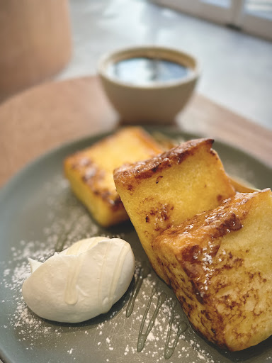 But there are still some pockets of contradiction, unconcerned with society’s pace — like this small French toast & coffee breakfast spot. It’s compact, has limited seating, simple and unpretentious, and is entirely run by a petite woman, just one person, who does everything from taking orders, being the cashier, chef, and barista.