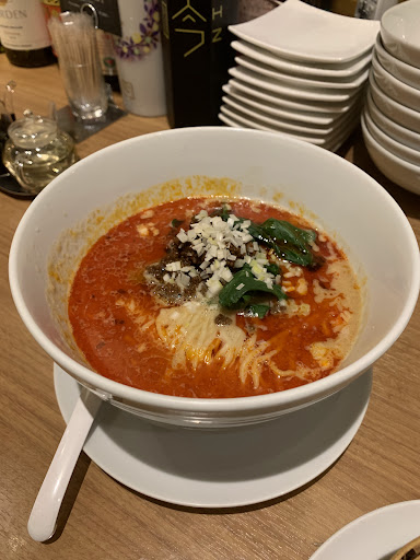 コースは前菜(3品盛り)、飲茶、海老揚げ、麻婆豆腐、麺もしくはちまき、デザートでした。 料理は、良く言っても美味しいということがなく、感激もなく、期待して行った自分たちは肩透かしでした。麻婆豆腐は辛く塩辛いだけ、麺のスープもコクや出汁が全く感じられませんでした。海老揚げは固く、マヨネーズの味しかしない。野菜炒めは、炒めただけの自宅でも作れるレベル。 他の方の口コミやビブグルマンっていったい何!?と思いました。 料理と料理の出てくる間隔が最低20分はあったので、とてもとても待ちくたびれました。