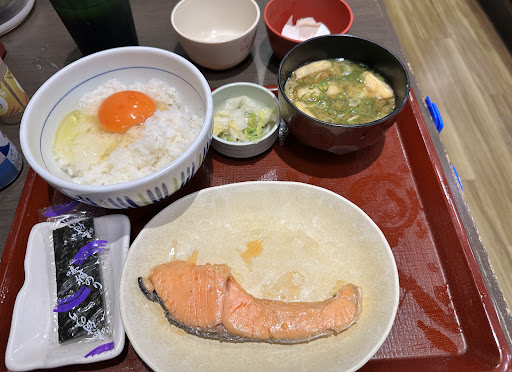 Read moreIt’s your basic breakfast set place that comes with rice miso and sides. About 20 seats. 7 am has about five salarymen and locals types. Kiosk ordering with English option. Had a salmon set with additional raw egg for less than $4 in total. Free tea. No complaints for this price point. Place also has meat bowls and Katsudon udon etc. I was just in the mood for raw egg and rice. I would eat here again. I feel it’s a good value and healthier than a greasy breakfast sandwich. And it was convenient for my hotel and the grocery store...