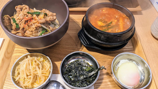 Read moreSmall no frills Korean restaurant with an open kitchen where you can watch your food being cooked. There are several seats around the counter for individuals and a few seats for small groups. Although the place was very busy in the evening (they stay open till 23:00), there was a continuous flow of people entering and leaving. The options are limited and there is only 1 dish that doesn’t have pork. The ambiance is fast paced and loud so may not be the best for socializing or hanging out. No reservation required. Overall A great value for money and delicious!