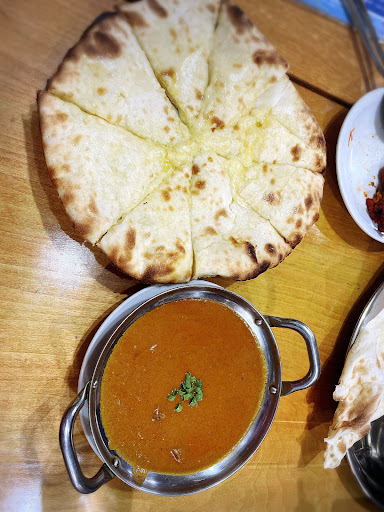 Read more本日のカレーマトンカレーをチョイス+200円でチーズナンに変更 どろっとチーズが入っていました、伸びない系です。 辛口にしましたが全然マイルド マトンは3.4切れほど、濃くも薄くもなく まぁまあかな。 連れのチキンサグを食べましたが水っぽくバターやココナッツ多いのか濃くや味の締まりがなかった。全体的にもたっとした感じのカレー。 こちらはリピなし。 ナンはもちもちとても大きく、ライスとおかわり自由! ドレッシングもフルーティーよりん??食べたことない、なんとも言えない味。 ラッシーは酸味が強め、よく飲むとろーとして甘い感じではなく、かなりさっぱり。 メニューは税抜き価格。 合計¥1254ほどでした 店員さん...