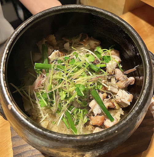 ◾️牛蒡と鶏肉?の土鍋ごはん 名前をはっきり覚えていませんが、そんなのだった気がします。 炊き上がりまで30分くらいかかるとのことで、 最初にオーダー。 お米は2人前で1.5合だったかな? こちら美味しいですが、お焦げなどはありません。 個人的にはお焦げが好きなので、ちょっと残念。 残ったらおにぎりして持ち帰りできます。 お茶碗1杯食べたらそんなに残りません。
