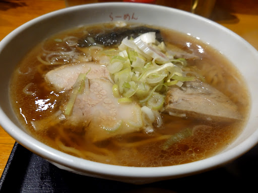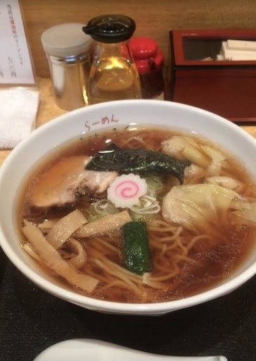 Read more店内は夜遅めだったせいか、お客さんはいない。流行ってるのかな? なんて、疑問もラーメンが出て来たら吹っ飛んでしまう。 スープは醤油、麺は中太加水でモチモチやや縮れ麺。 ワンタン、チャーシュー、ホウレンソウ、ナルト、メンマの構図。 特徴として『チャーシューがバラとロースを選べるところ!』これは期待が出来ます! 私はバラにしましたがこれが美味い!チャーシュー追加でもいいです! スープはどことなく懐かしい、そして日本そばの雰囲気も微妙に香る合わせスープかな? サラッと完食してしまいます。 日本に帰ってきて食べたいって感じのお店です。 他にも塩ラーメンや冷やしラーメンなんかもあったので気になりました。 Maybe because it was late at night in the store, there are no customers. Is it popular?