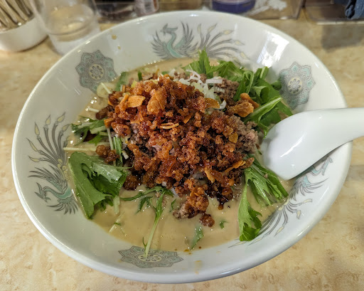 夏季限定、冷やし豆乳担々麺を去年初めて食べてめちゃくちゃ美味しかったのでまた来てしまいました(^^) 豆乳なのにサッパリで坦々のあんのお肉がカリカリ、ニンニクもカリカリ、水菜はシャキシャキで味、ボリューム、食感、香り、どれをとっても満点💯でした!!