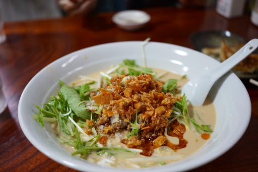 Read more定食が食べたい!とたどり着いたお店。 テイクアウトでも人気なため、夜の開店時間ピッタリに行ったのに滑り込みセーフ。 席は空いていたものの、後からきた二人組は注文が殺到していたのか、タイミング的にお断りされていました😱 2人で注文したのは、冷やし豆乳坦々麺大盛り、餃子、唐揚げ定食。 冷やし豆乳坦々麺は、フライドニンニク🧄と、たっぷりの水菜入り。最後まで食感を楽しみながらいただきました! 餃子🥟はとっても大ぶり!たっぷりキャベツが入っているのに、肉汁がじゅわっと広がって大満足でした。 唐揚げ定食も、いや、コスパ!笑 副菜やサラダ、ご飯もたっぷり乗っていました。 いつもご飯は大盛りなのですが、今回は普通盛りにしておいてよかった…🫣ってく...