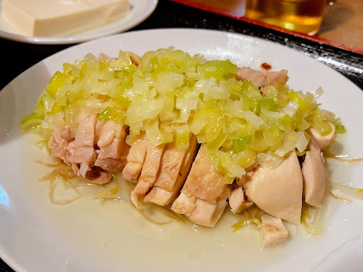 とても柔らかな蒸し鶏に絡むネギ生姜ダレがまた癖になる味わい。