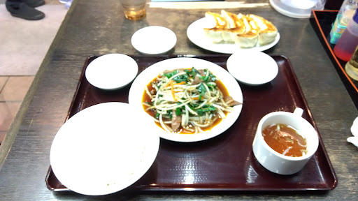 青椒肉絲(チンジャオロース)の漢字にある「青椒」は唐辛子を辛味を抜いて改良したピーマン・ししとうなどの緑色の果実。「肉絲」(ロースー、ロース、ルースーなど)は、細切り肉の意味。 ピーマン、タケノコ、肉を細切りにした物を炒めた料理がのった麺が出てきたので、肉絲麺(ルースーメン)は青椒肉絲をのせた中華麺のことか。麺は中太。 ジャンボ餃子は大きくて一口では食べれない大きさ。 味は普通に美味しい。海老チャーハンとか、焼肉丼も美味しそうだったので今度寄ること...