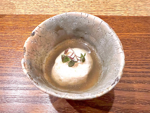 ・鳥の胸肉のしんじょと、スープ 酸味が効いていて癖になるような口当たりです。鶏肉の深みがある味わいが活きています。