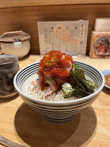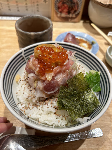 Read moreI only went in because, hardly no customers in this location during lunch time or after 1pm. And noticed mostly foreign workers at this location due to Roppongi I guess. Tho my first time, there was couple of sharp fish bones inside of my sashimi bowl so I was shocked, very disappointed. 魚の骨が入っていたのでご注意 Dangerous! People really should be careful that’s for sure!!! When ya go during lunch time-non Japanese females chef serving but at night an old Japanese stubborn man serving the sushi bowl lol one time order mistake by employees and chef made 5 bowls right front of us -chef were pissed at me saying I got a wrong bowl lol I went 3times and it’s definitely good for the price! Especially the price is very reasonable but people finding out that this location has less line so nowadays too many people and i don’t think it’s worth the line unless ya visiting for the first time. And ¥500 add sea urchins isn’t worth for the price here uni here isn’t fresh and they only give ya a very little Uni. Tho i love the ginger...
