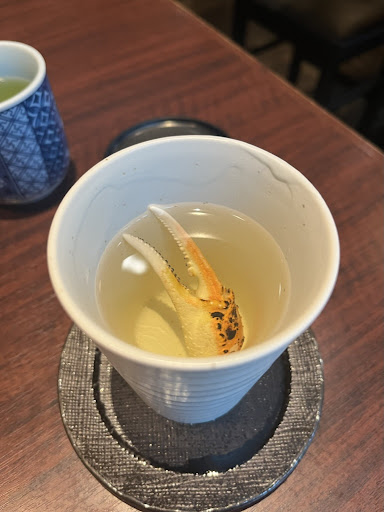 Ducked into this spot on a rainy day, and what a find it turned out to be! With the weather keeping the crowds at bay, the cozy atmosphere felt even more inviting. I went for the set menu, which was an absolute crab feast. Kicked things off with a warm sake that came with a crab claw in it - a first for me! The crab-infused sake was a flavor bomb, setting the tone for the crab-centric culinary journey ahead.