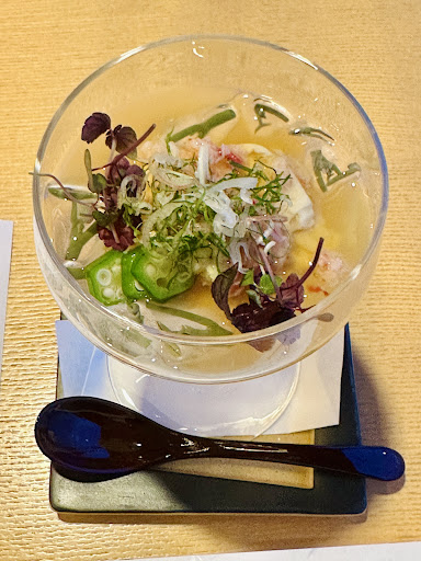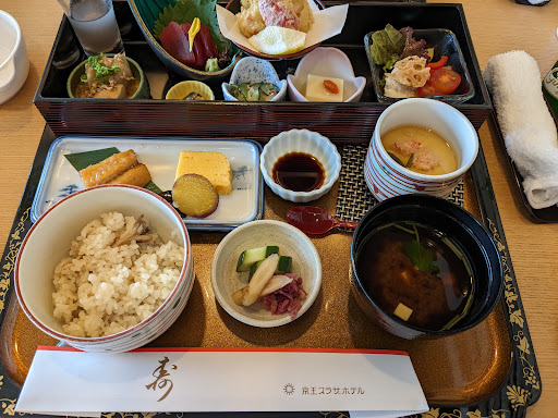 Top notch service, delicious Japanese food, and drinks. Reserved the ladies lunch special online. Comes with an appetizer, array of meat, fish, and vegetable dishes, dessert, and coffee or tea. It was a lot of food! The mango pudding and seasonal dessert was so good too! I think it was 2600 yen +tax and a small service fee since it's inside the Keio Plaza Hotel. Also great 15th floor view of Mt. Fuji if it's sunny and you're lucky enough to get a window seat. Went for my mom's birthday lunch and checked birthday for family on the online form. I didn't expect much because they didn't say anything when we arrived but to our surprise they brought out a cute birthday dessert plater. The tables are socially distanced, and servers are masked up with gloves in their Kimonos. Their hospitality, service, and food presentation was perfect! It's an affordable place for a small fancy lunch. Their yuzu liqueur with club soda cocktail was very good (not included in lunch). Keio Plaza is 2 minute walk just outside JR Hachioji Station. Going to try...