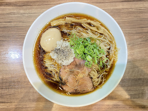 程よい油が覆った濃すぎないバランスのいいスープ つるっと啜れるやや細麺 炙って香りがよいしっかりめのチャーシュー(柔らかいチャーシューだと脂身が滲み出て味が変化しそうだからしっかりめのチャーシューにしたその配慮を勝手に感じる) 新鮮で、刻み過ぎないことで汁気もなく、辛さも感じないいいアクセントの刻み玉ねぎの上にブラックペッパー