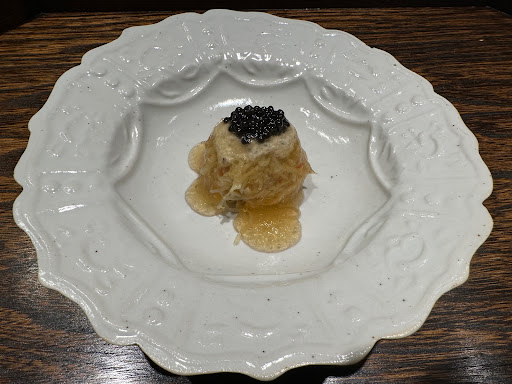 I really liked the cream cheese roll and the cured meat with truffles. However, I didn’t think all elements of this dish were able to shine. The cured meat, because of its saltiness, overpowered the truffles. The amount of cream cheese stuffing also overwhelmed the crispness expected of the roll. It would have been better if they had used less cream cheese and mixed the cured meat within the cheese itself.