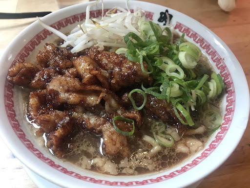 This place focuses on an extremely fatty meaty broth topped with some funky fried meat that is covered in a sweet sauce. The broth itself is nice and flavorful with tons of meat juice, but is also surprisingly sweet with the sauce from the meat. Was a little too sweet for me at first, but can be countered a bit with the toppings on the table like garlic. The noodles here are thick and chewy, and actually quite firm. They give you a bunch of the meat, which is thinly sliced and then covered in a thick kinda... cornstarchy batter almost similar to a fish and chip batter. I love meat but not sure if I was a huge fan of this one, as there was definitely more...