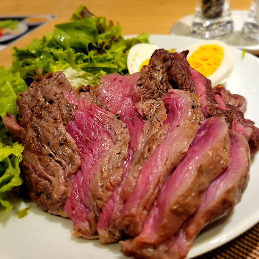 糖質制限をうたうだけあり こちらのお肉は赤身。 150gがダブルで300g お店の方に、なんなら トリプルも大丈夫ですよ😁 て、言われたけど、朝ごはん 食べてたから、次回にしますって お断りしました🤣🤣🤣