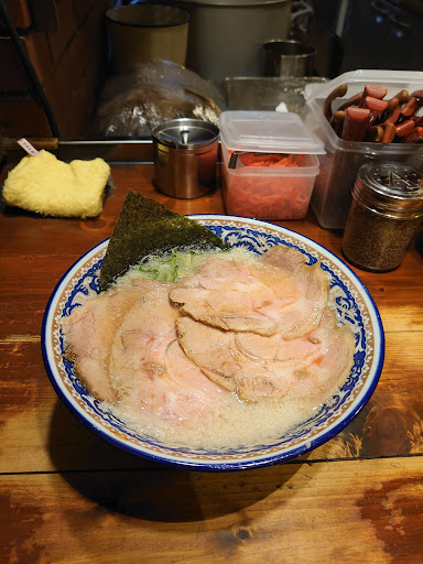 Read moreラーメンは長浜ラーメンなのかな 細麺で醤油と味噌がありラーメンとチャーシュー麺がありました(醤油ラーメン800円チャーシュー麺1000円味噌ラーメン1000円チャーシュー麺1200円だったかな) 紅生姜を入れるとさっぱり美味しかったです 替玉する人が多く1人30〜40分位滞在しているので店前に並んでしまうようです 外でも待ち店内に入っても30分位待ちました そういえばあの学生さんたち何回も替玉してたけどチケット買ってなかった 盛り付けも私達のと全く違ってたってことは贔屓してるってことかな? ラーメンも値上がりしたようですがその人達の分支払ってるのかしら? それより何より最悪なのが店主と常連客の話が長いこと 待ってる客がいるのに食べてる最中に店主がスマホ出してその人たちと一緒に写真撮るのってありえない 誰も並んでないならいいけど待ってる方としては不愉快! 作っている時もおしゃべりばかり コミュニケーション取るのもいいけど限度がある 大声で話してはいないけど大声で喋らないでって張り紙はしてある。喋りまくっている方が気になってしまう 客も調理している前でマスク無しでの店主との会話せめてパーテーションしてくれ〜 喋りまくっている中での食事はこの時期まだ抵抗があるし隣の人との間も狭かった 食べ終えた丼も流しに入れるとき水がカウンターに飛ぶほどガチャガチャ入れてその前にあるレンゲは衛生的にどうなのか? 是政にあったにんにく屋と同系列店?あそこは美味しかったな チャーシューは美味しいけど 心が満たされ...