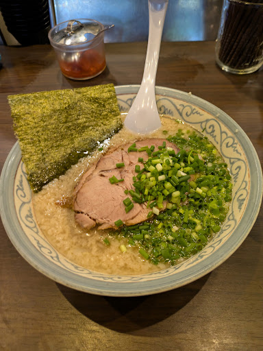 Read more「にんにく入れても入れなくても美味しいラーメン」とんこつはかなり薄く、どちらかというと魚介系の出汁の方を強く感じるスープです。そしてこのスープがめちゃくちゃ美味い。にんにく入れずに半分くらい食べましたが、細麺の麺にいい感じにスープが絡みとても美味しくいただけます。にんにく入れても、にんにくに負けないくらい出汁が強く協調して美味しくなります。美味しすぎて替え玉は2回くらいはいきたくなります。人気すぎてスープ切れもあるので余裕を持った訪問推奨になります。
