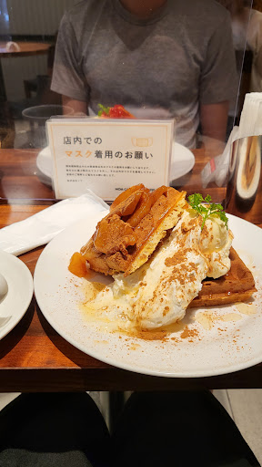 Read moreGreat waffles, sandwiches and drinks in a relaxing environment. Open from 8am (very rare in this part of town) and super nice staff. They have an extensive menu that can accommodate any palate and offer dine in and take out. Their seasonal waffle are super interesting and alway very yummy. You can bring a dog but needs to be in a dog bag (a bit frustrating but it’s a start, I guess). Their salad set from 11am to 2pm is super convenient. If you order a matcha latte be aware it will come with cream on top so you might want to sono cream if you don’t like cream. Prices are reasonable for what you get. Nice take away set up (we had to do take away this time as I did not have...