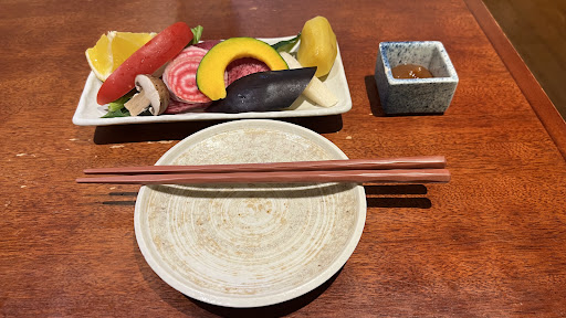 The menu is just a simple one, but what amazes me is the freshness of the food. It was my first time having raw vegetables that I never thought it is edible raw such as pumpkins, beetroot, eggplant,mushroom, but it turns out to be tasty and goes well with the miso sauce given with. Variety of raw egg can be selected. Only described in japanese, so I had to pick the first one sakura tamago,...